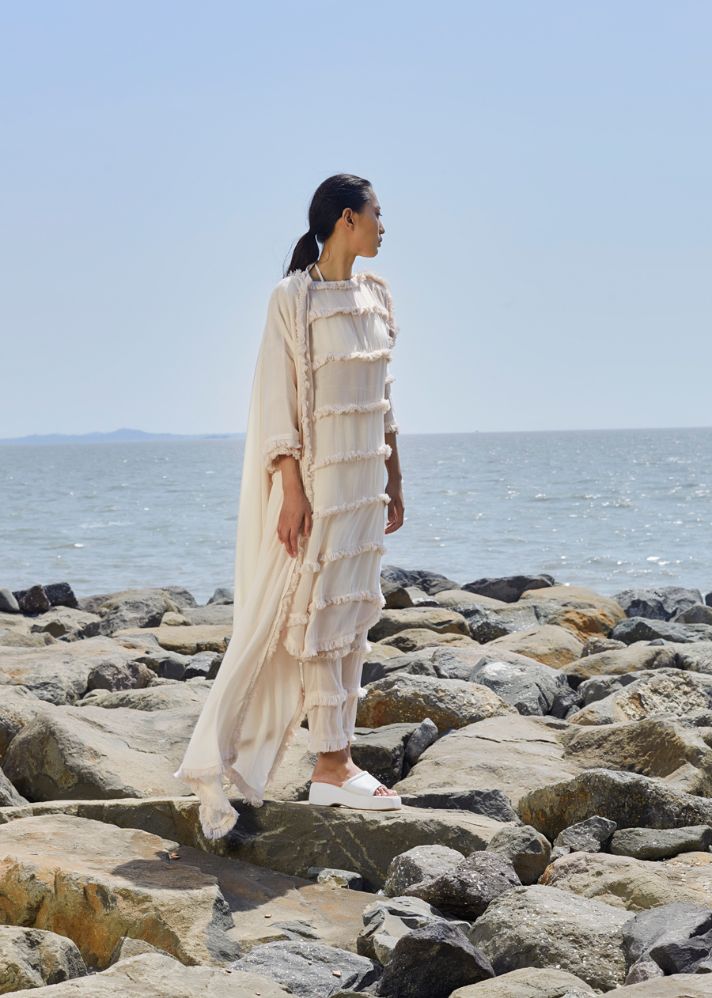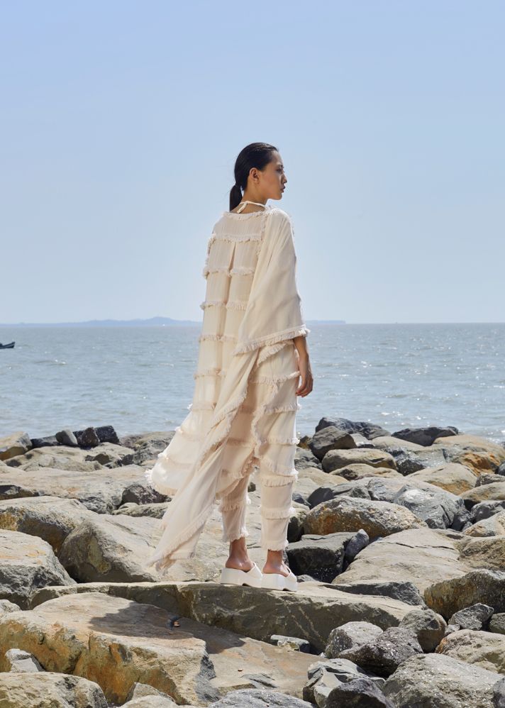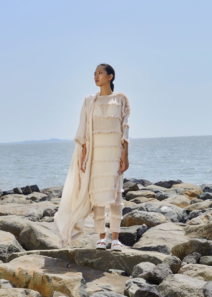 تونيك بشراشيب متدرجة اوف وايت سيت 3 قطع