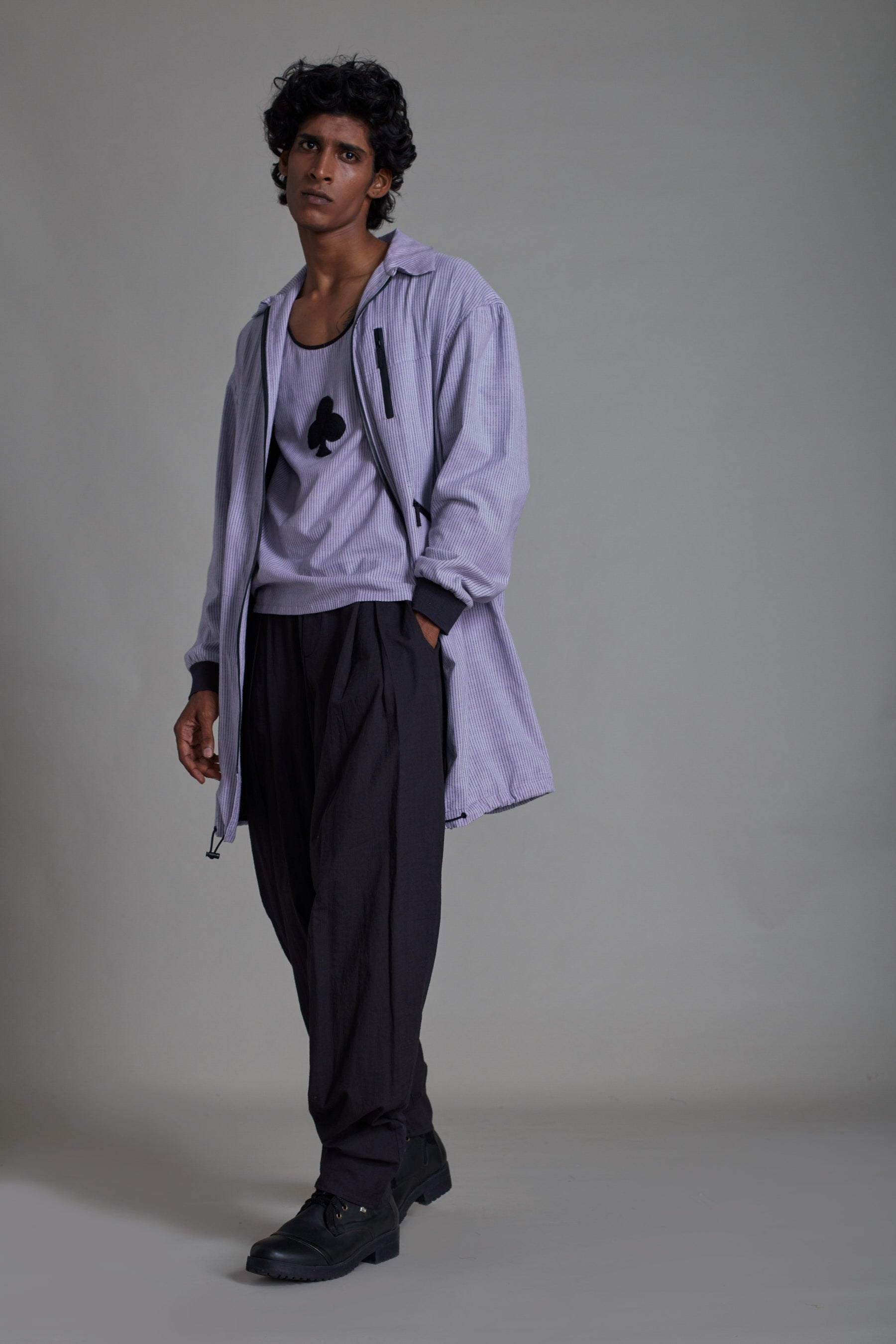 جاكيت رجالي بتصميم فضفاض - لافندر