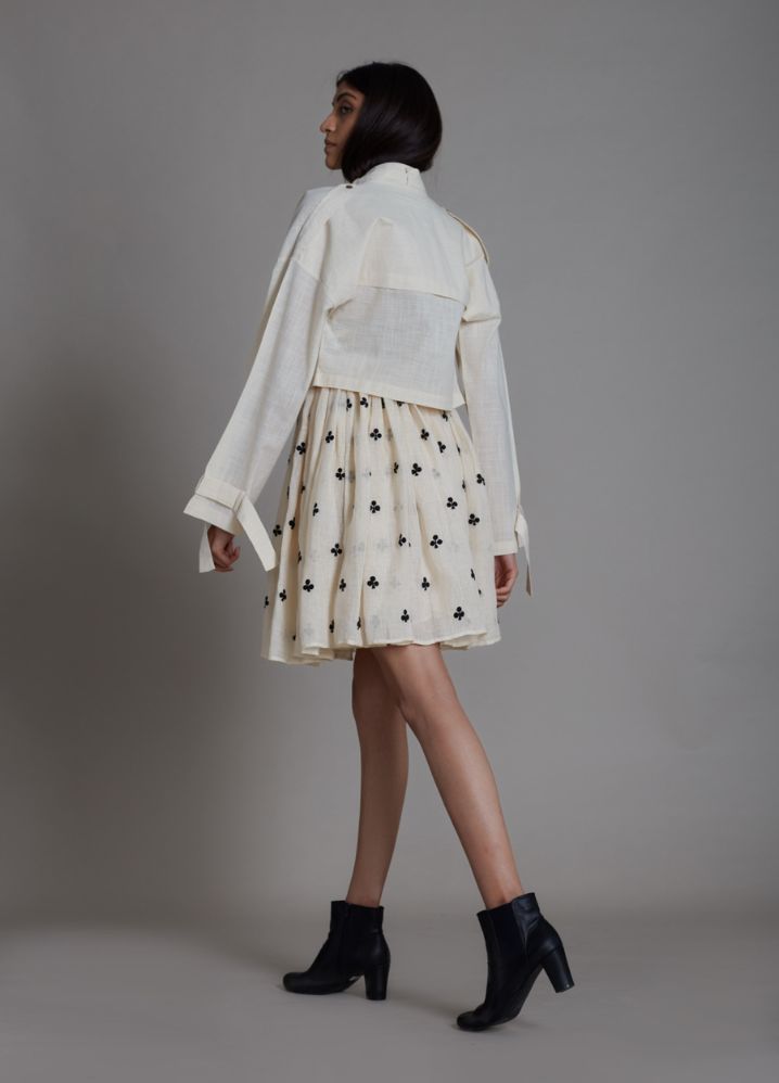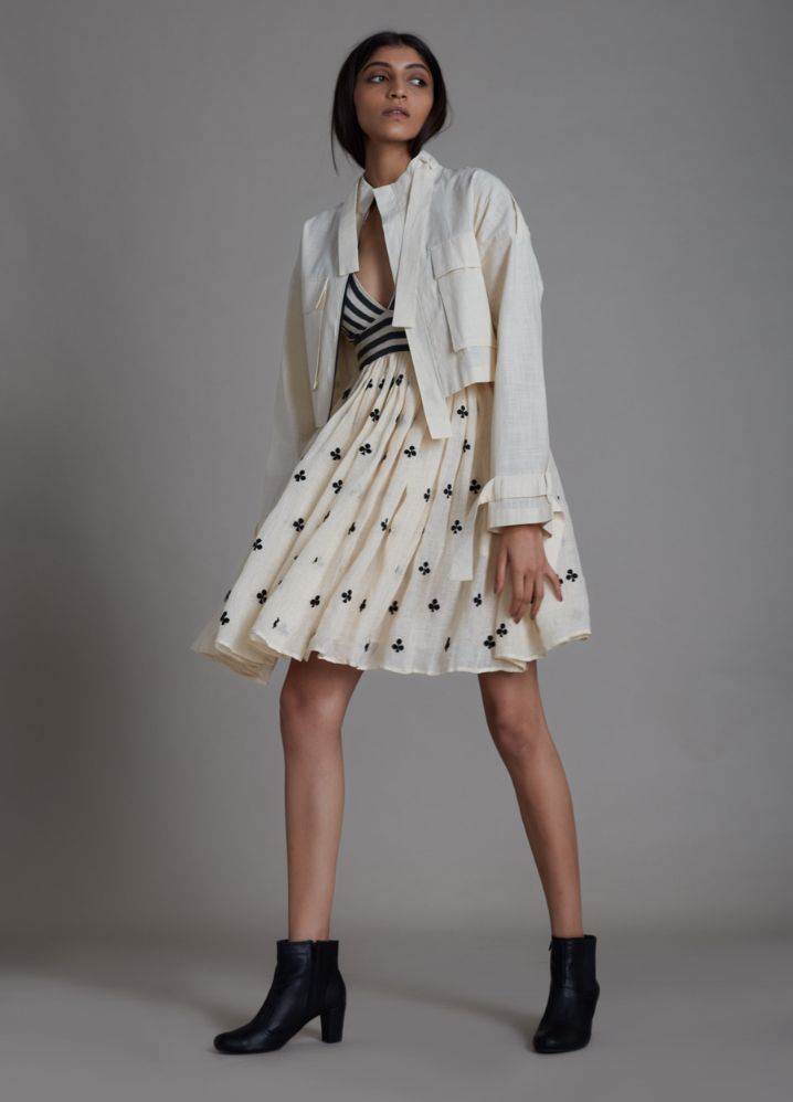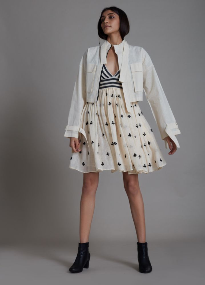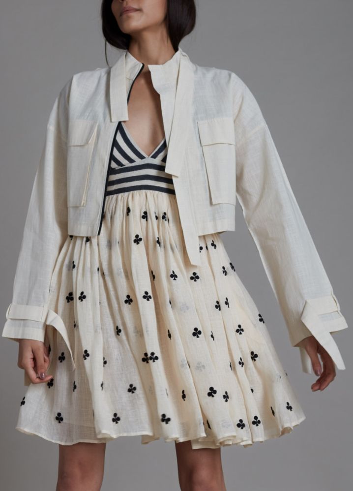 رومي - طقم مكون من فستان قصير مزين بنقشة سنك وجاكيت بيج فاتح