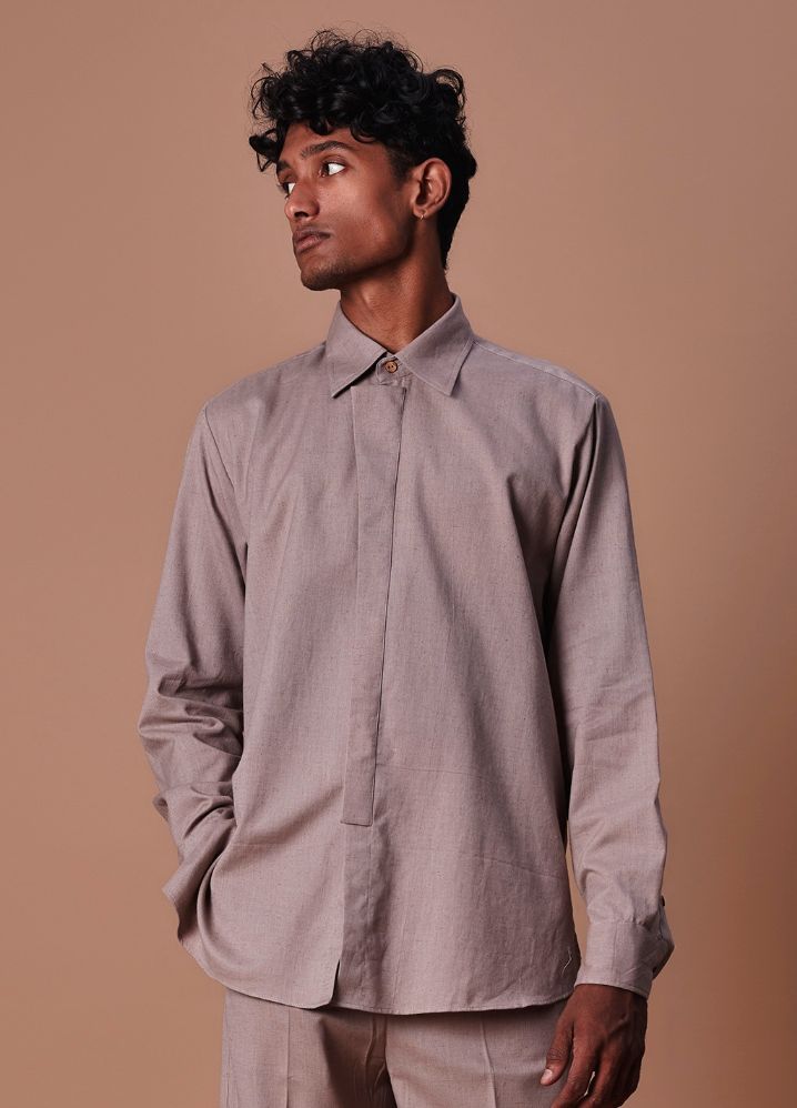 طقم قميص رمادي وبنطلون بطول الكاحل