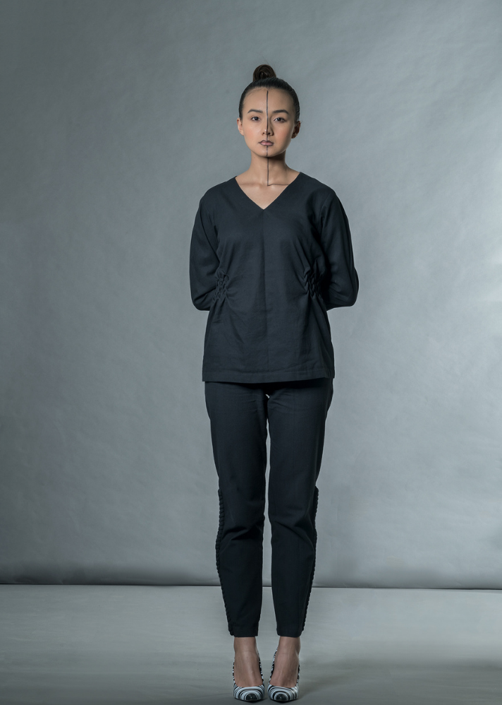 تعليمات العناية:يغسل يدويًا بالماء البارد بمنظف سائل خفيف. لا تنقع. لا تفرك. يجفف في الظل بالمقلوب و الكي بالمقلوب