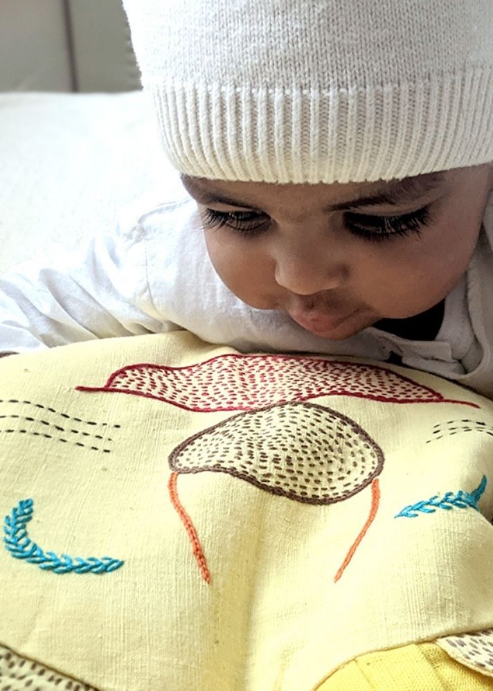 وسادة على شكل أسد من القطن العضوي محشوة ببذور الخردل
