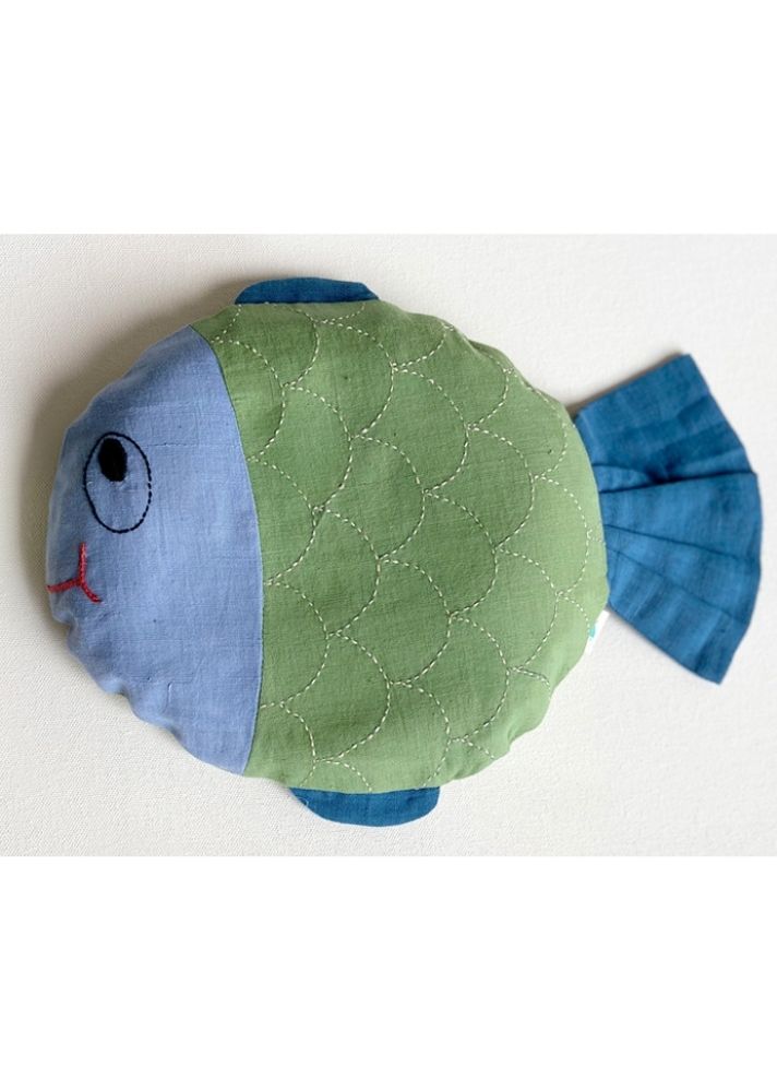 وسادة على شكل سمكة من القطن العضوي محشوة ببذور الخردل