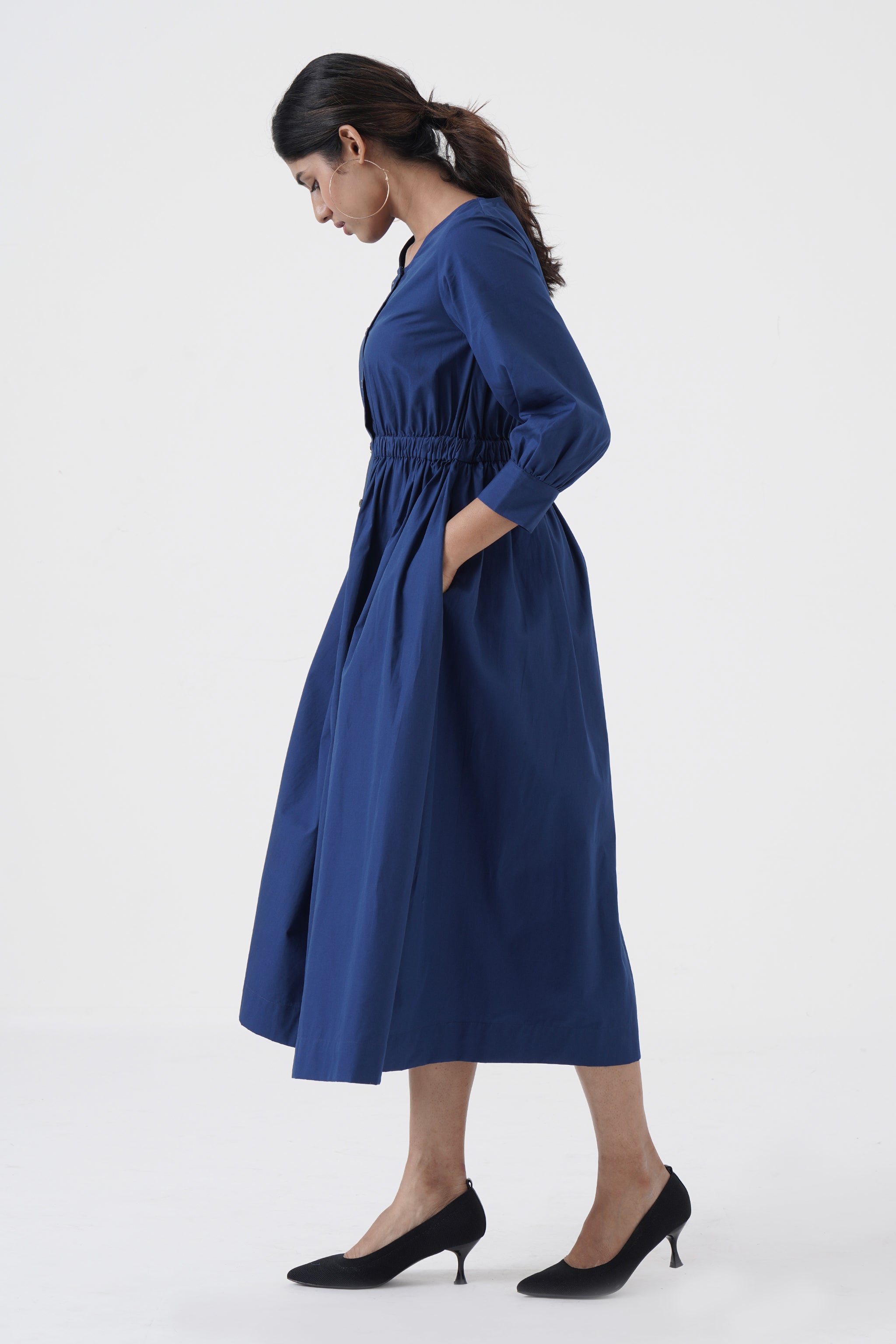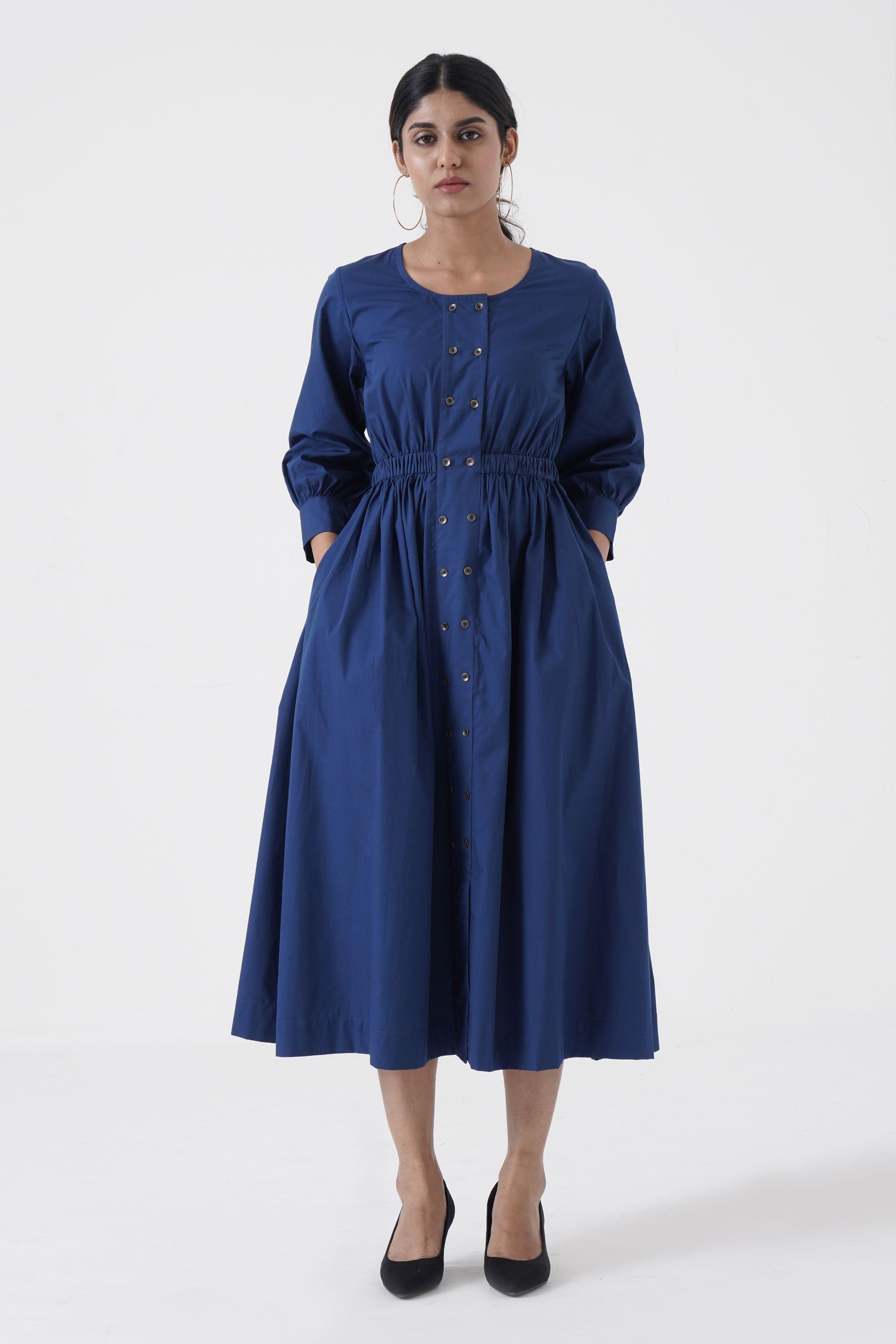 يوفوريك - فستان بأزرار مزدوجة - أزرق