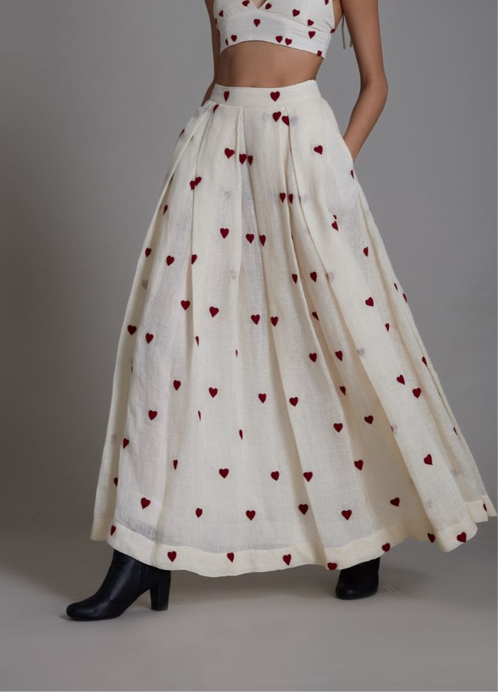 تنورة ليهينغا بطبعة القلب - بيج فاتح