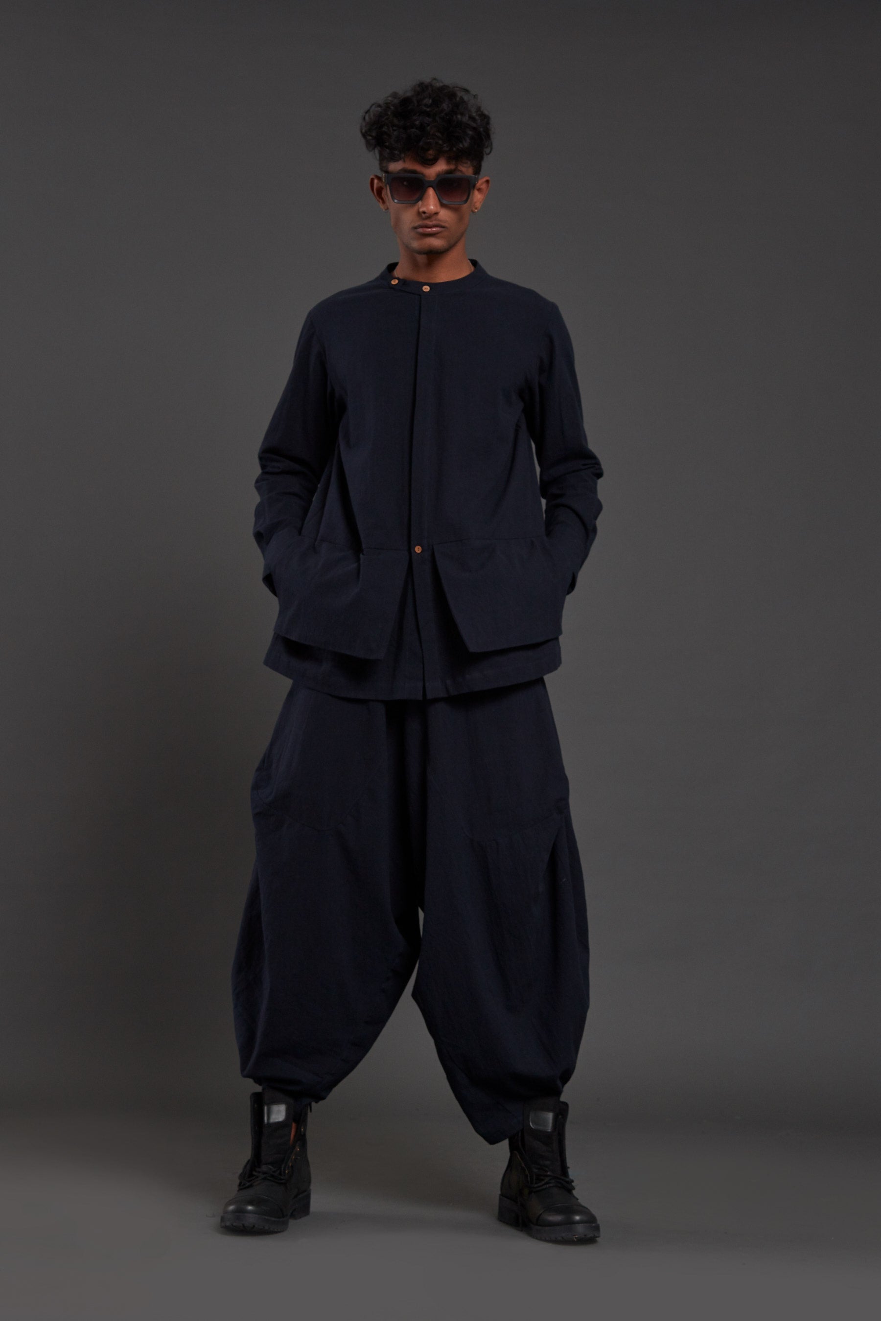 طقم رجالي فضفاض كحلي