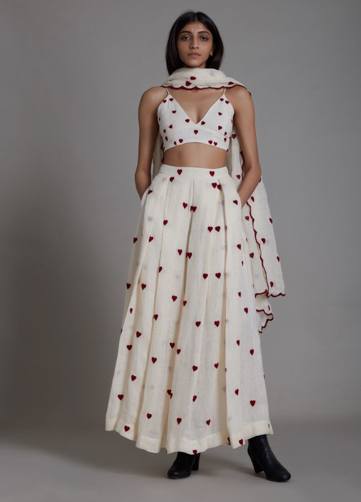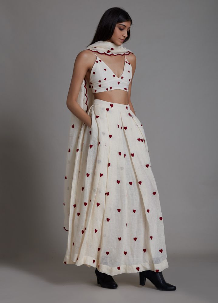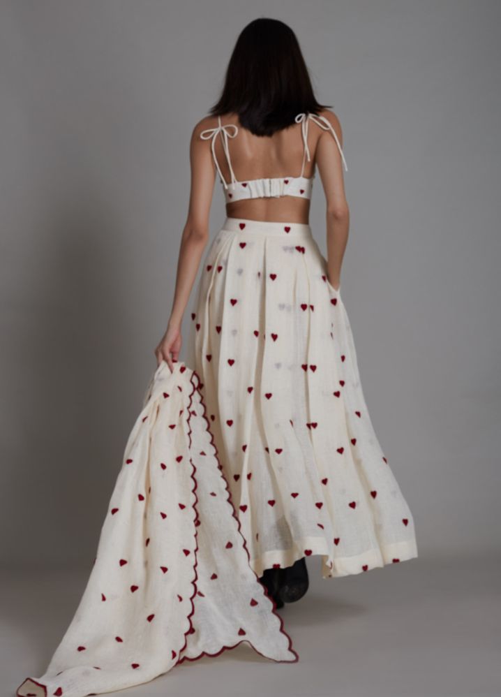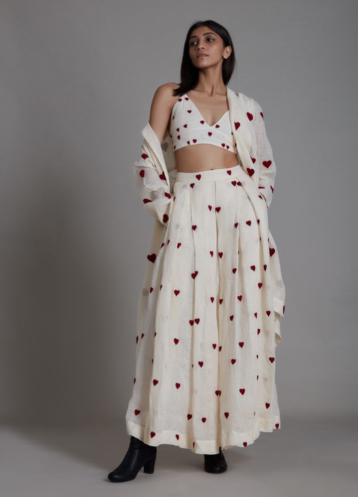 طقم ليهينغا بطبعة القلب مع شال بحواف منحنية - بيج فاتح