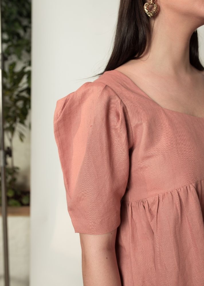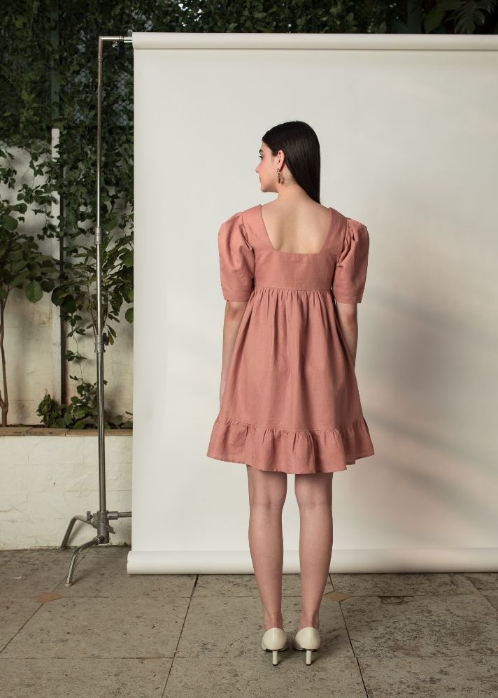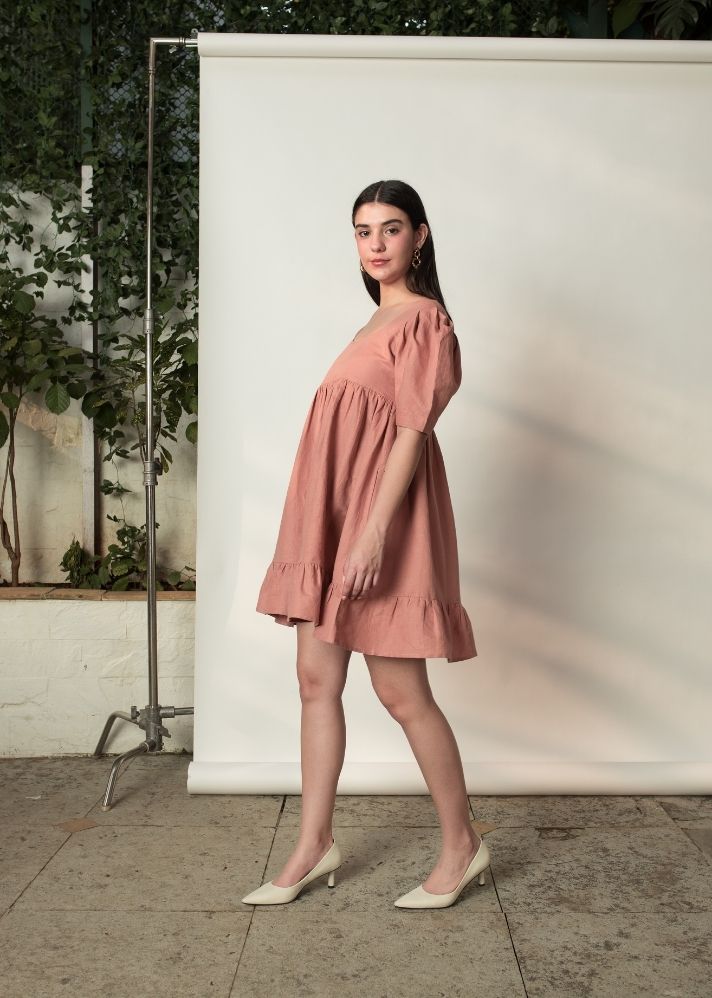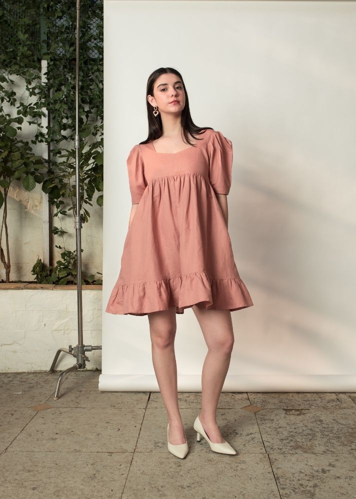 يُعد هذا الفستان القصير خيارًا سهلاً لجميع سهراتك النهارية والليلية. تم تصميمه بتنورة واسعة بمهارة، على شكل خط عنق واسع وأكمام منظمة مطوية تخلق صورة ظلية جذابة.