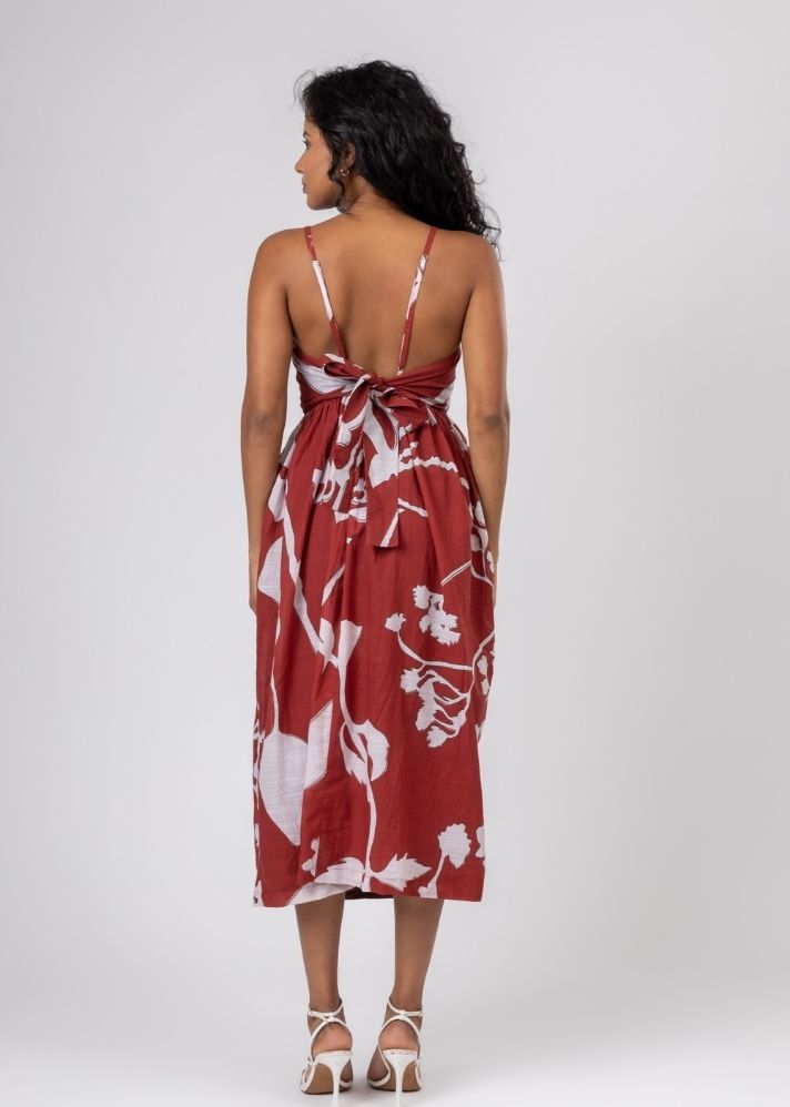 "فستان مطوي مع تفاصيل القوس الخلفي. الفتحة: إغلاق بسحاب خلفي الجيب: جيب داخلي. صنع في الهند: هذا المنتج مصنوع في دلهي من خلال مصنع بأجور عادلة. المصنع متخصص في الإنتاج على نطاق صغير، حيث يمكننا تقليل توليد النفايات وإدارة نفايات المصنع عن طريق إعادة تدوير الخردة إلى نسيج مرقع. قد تأتي كل قطعة مع تطريز أو رقعة إضافية ولكن الشكل والمظهر العام للقطعة لا يتغير. هذه القطع هي جزء من مجموعة ذات إصدار محدود، ويتم تصنيع المخزون حتى تتوفر المواد الخام."