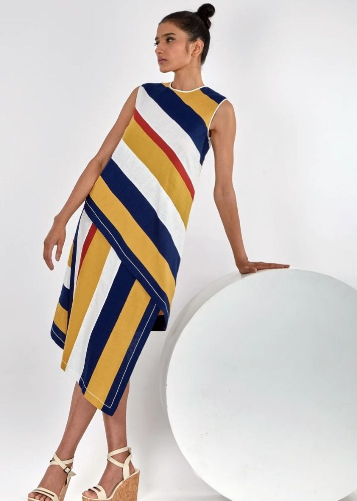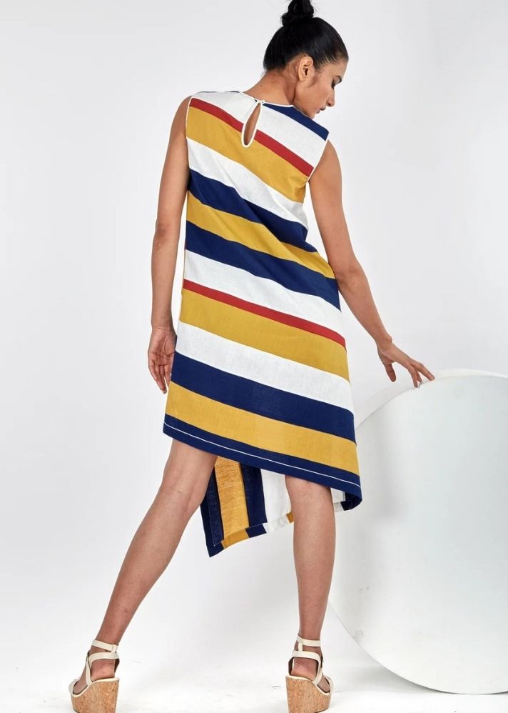 أضف الحيوية إلى خزانة ملابسك مع فستان Miami Rainbow Stripe Dress، الذي يتميز بألوان نابضة بالحياة وجريئة ستضيف جوًا من المرح والرقي إلى أي مناسبة. منسوج بعناية من مواد فائقة الجودة، ومن المؤكد أن ملمسه الفاخر سيضفي الفخامة على كل مظهرك.