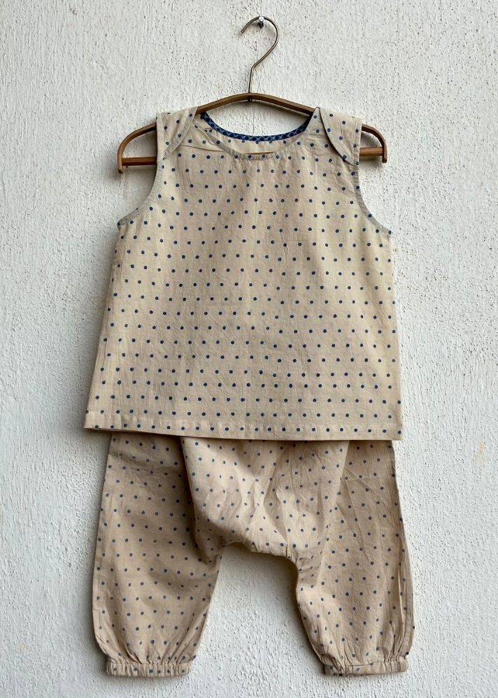 قطعة فوقية صيفية رايدانا باللون النيلي مع بنطال متناسق من أورجانيك زو ملائم للجنسين