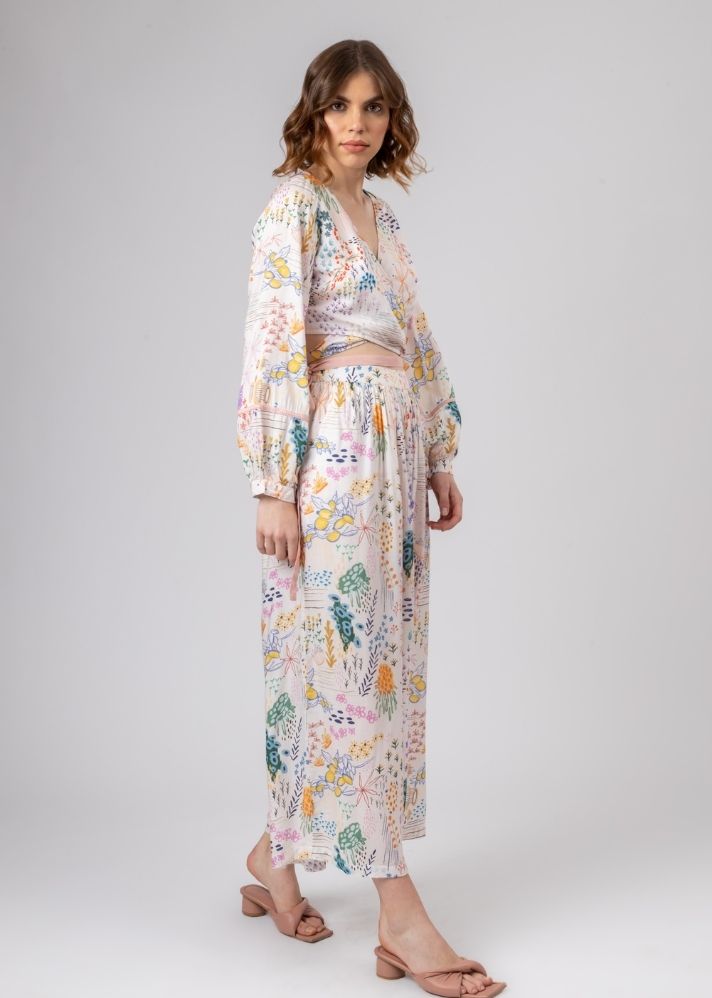"توب ملفوف مطبوع مع ربطة عنق باللون الوردي مع بنطلون مطبوع مجمع عند الخصر. الفتحة: بنطال بسحاب جانبي للإغلاق الجيب: بنطال بجيوب جانبية. صنع في الهند: هذا المنتج مصنوع في دلهي من خلال مصنع بأجور عادلة. المصنع متخصص في الإنتاج على نطاق صغير، حيث يمكننا تقليل توليد النفايات وإدارة نفايات المصنع عن طريق إعادة تدوير الخردة إلى نسيج مرقع. قد تأتي كل قطعة مع تطريز أو رقعة إضافية ولكن الشكل والمظهر العام للقطعة لا يتغير. هذه القطع هي جزء من مجموعة ذات إصدار محدود، ويتم تصنيع المخزون حتى تتوفر المواد الخام."