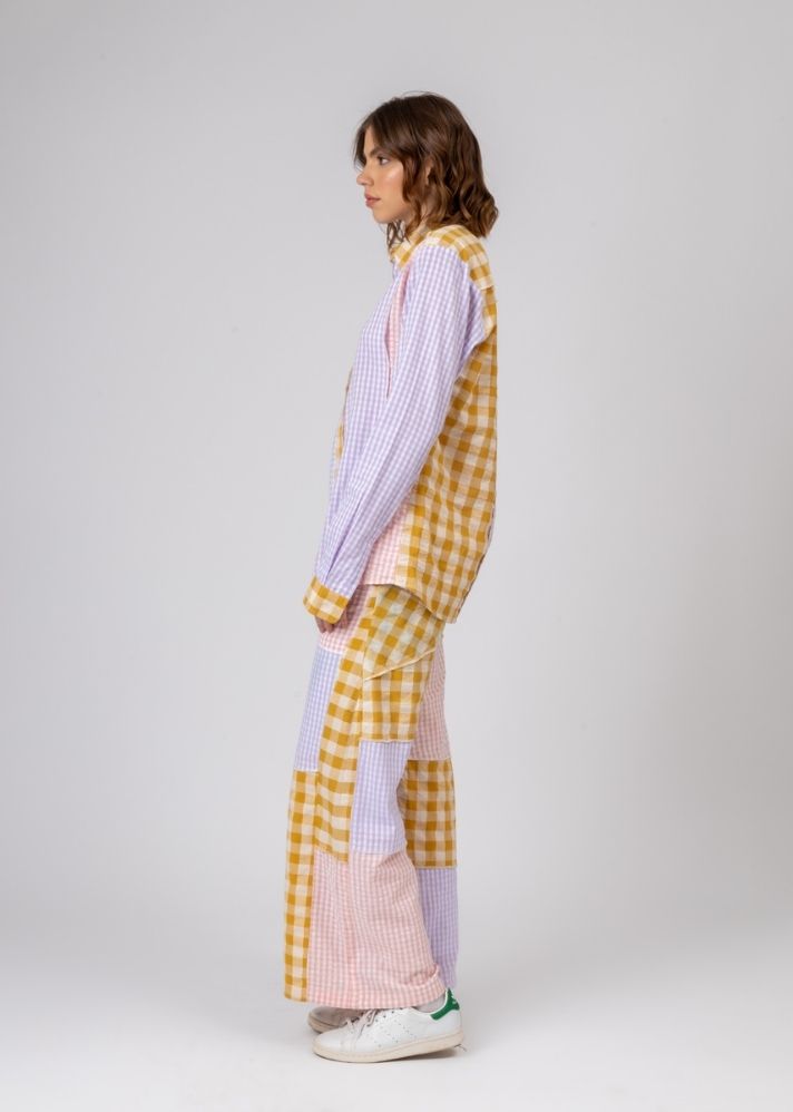 "طقم قميص بألواح وأكمام كاملة وبنطلون واسع الفتح: زر أمامي وسحاب في البنطال الجيب: بنطال بجيوب جانبية. صنع في الهند: هذا المنتج مصنوع في دلهي بأجور عادلة. المصنع متخصص في الإنتاج على نطاق صغير، حيث يمكننا تقليل توليد النفايات وإدارة نفايات المصنع عن طريق إعادة تدوير الخردة إلى نسيج مرقع. قد تأتي كل قطعة مع تطريز أو رقعة إضافية ولكن الشكل والمظهر العام للقطعة لا يتغير. هذه القطع هي جزء من مجموعة ذات إصدار محدود، ويتم تصنيع المخزون حتى تتوفر المواد الخام."